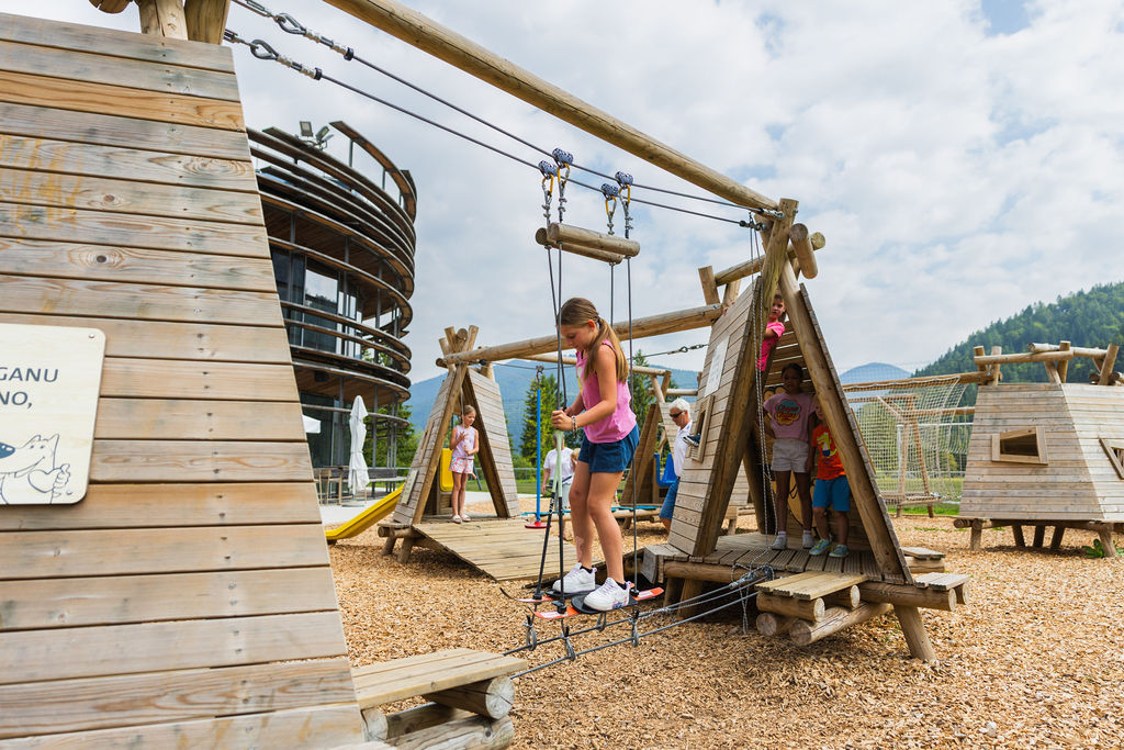Otroško igrišče v Planici vključuje kar 14 modularnih elementov in 3 tobogane, ki skupaj ustvarjajo raznoliko in funkcionalno igralno površino. Zasnova spodbuja gibanje, razvoj ravnotežja, koordinacije in ustvarjalnosti, hkrati pa omogoča sproščeno igro na prostem.