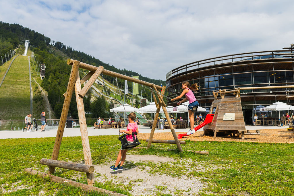 Posebnost igrišča v Nordijskem centru Planica so tematsko prilagojeni elementi, zasnovani posebej za to lokacijo in njeno bogato športno tradicijo.