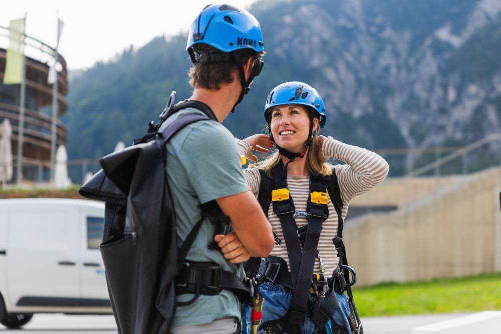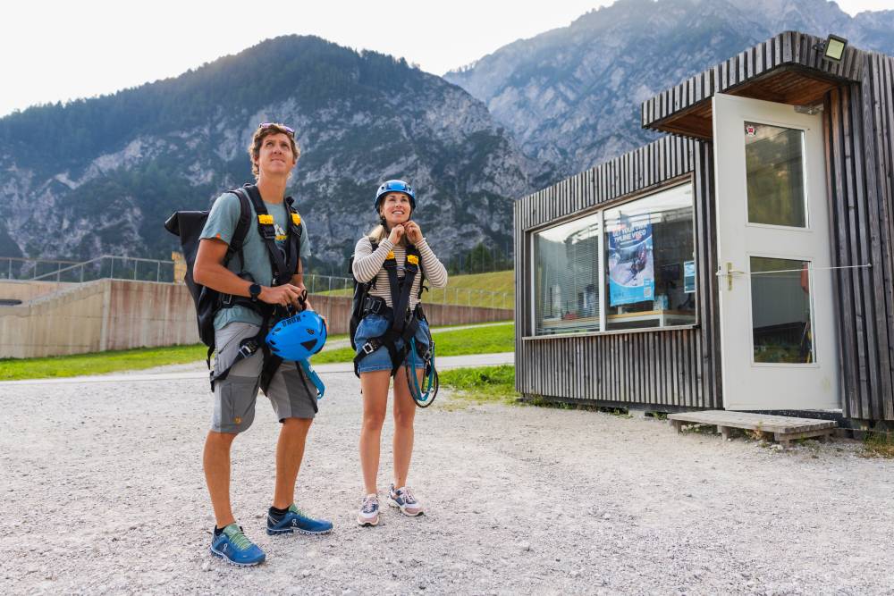 Vso potrebno opremo boste prejeli pri nas. Naši inštruktorji vas bodo opremili z varnostnim pasom in čelado. Prav tako boste prejeli voziček, ki bo primeren vaši telesni teži. Predlagamo le športna oblačila in obutev. Dolgi lasje naj bodo speti v čop. V poletnem času natikače lahko spravite v nahrbtnik, ki ga boste prejeli skupaj z opremo.