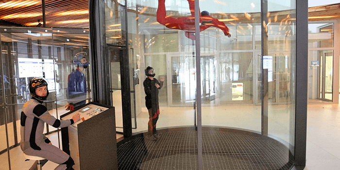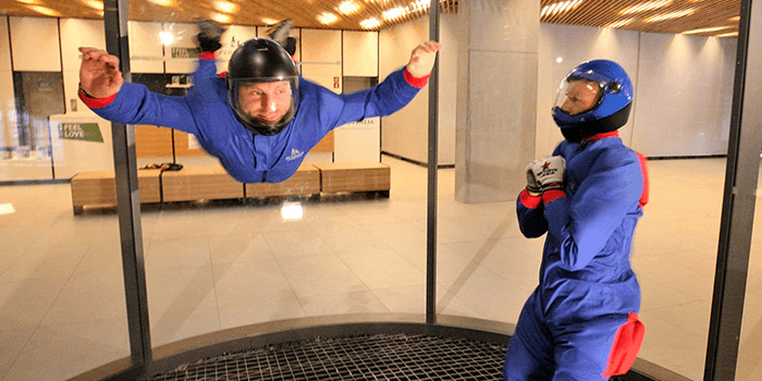 The entire procedure takes approximately 1 hour (including the preparations for flying), and you fly in the wind tunnel 3 times for one minute or 2 times for 1 minute.