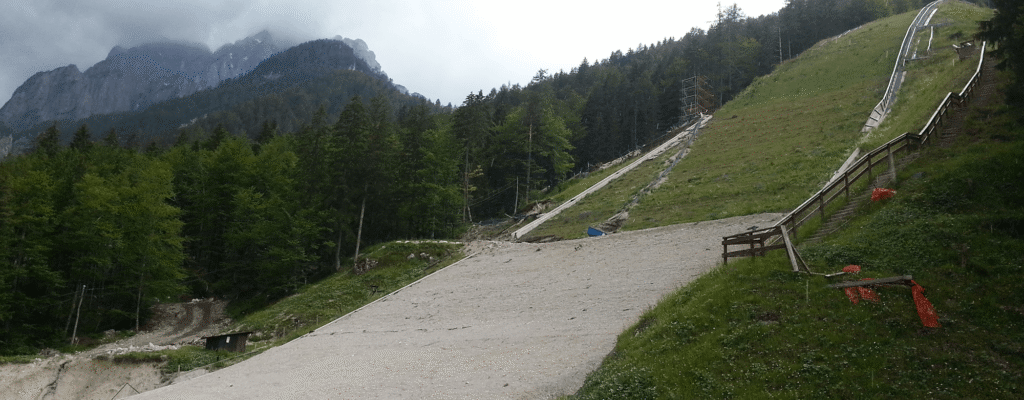 • uredili doskočišče, ki mora biti široko pri 185 metrih 33,30 metra, 37 metrov pri 215 metrih, pri 240 metrih 38,5 metra, pri točki U (linija padca) pa 40 metrov.