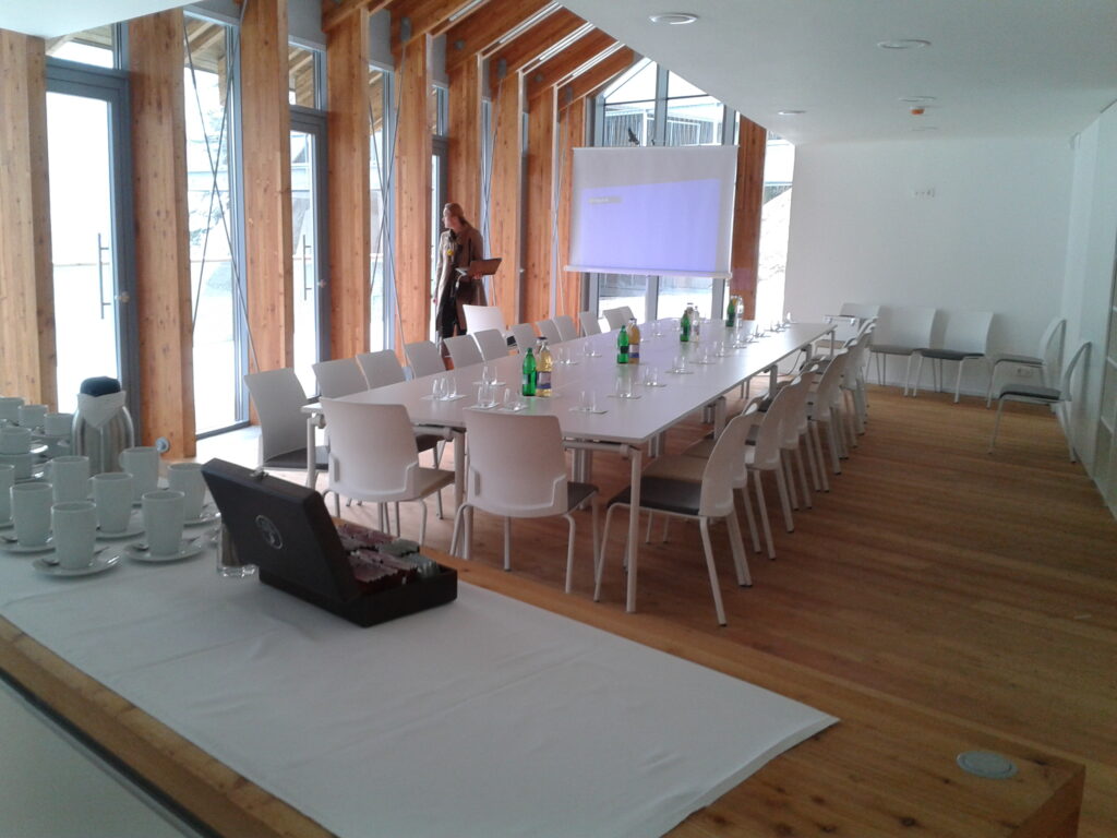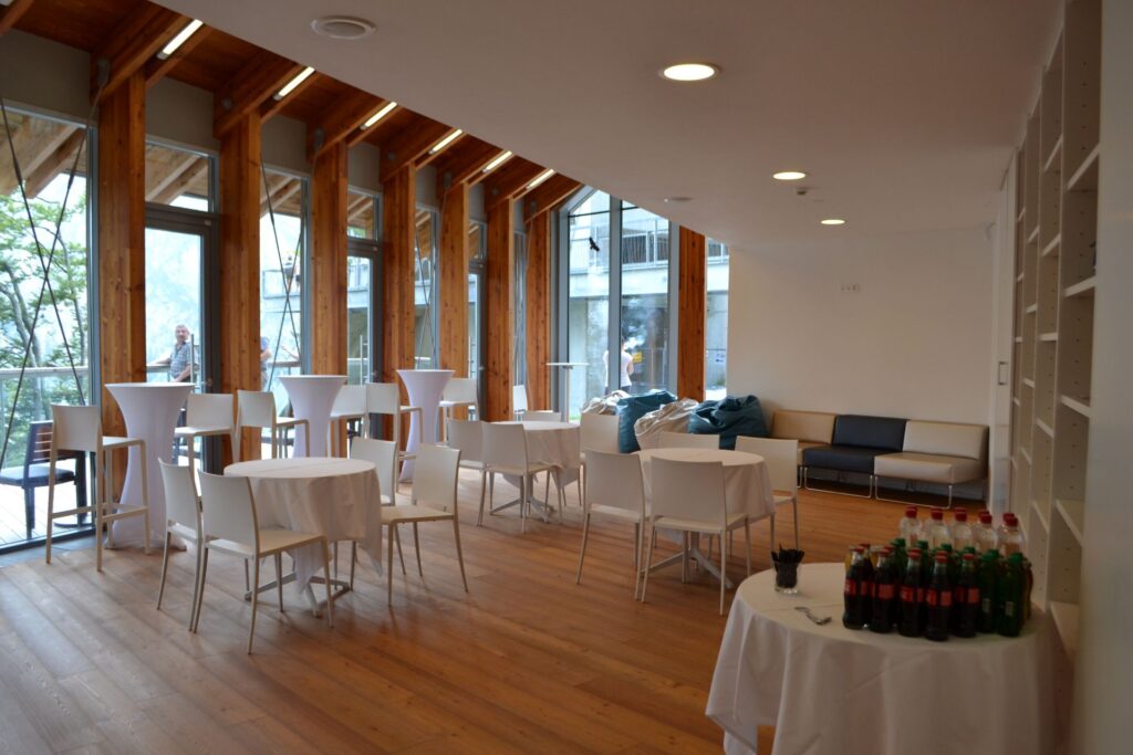 Prostore je mogoče prilagoditi različnim postavitvam – od kino postavitve, konferenčne postavitve do banketne ureditve ali stoječega sprejema. Razgledna ploščad na vrhu objekta predstavlja atraktivno lokacijo za pogostitve, poslovne sprejeme ali fotografiranje dogodkov.
