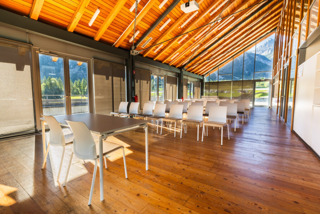 Prostor je primeren za sestanke, strokovna srečanja, konference, seminarje in izobraževanja. Omogoča različne postavitve glede na tip dogodka, lokacija ob skakalnicah pa zagotavlja mirno in osredotočeno okolje za delo. Objekt je opremljen z ozvočenjem, projektorjem in projekcijskim platnom, kar omogoča kakovostno izvedbo predstavitev, predavanj in poslovnih srečanj.